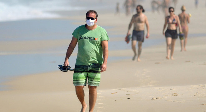 Movimentação na praia da Barra da Tijuca (RJ) na manhã deste domingo (26)
